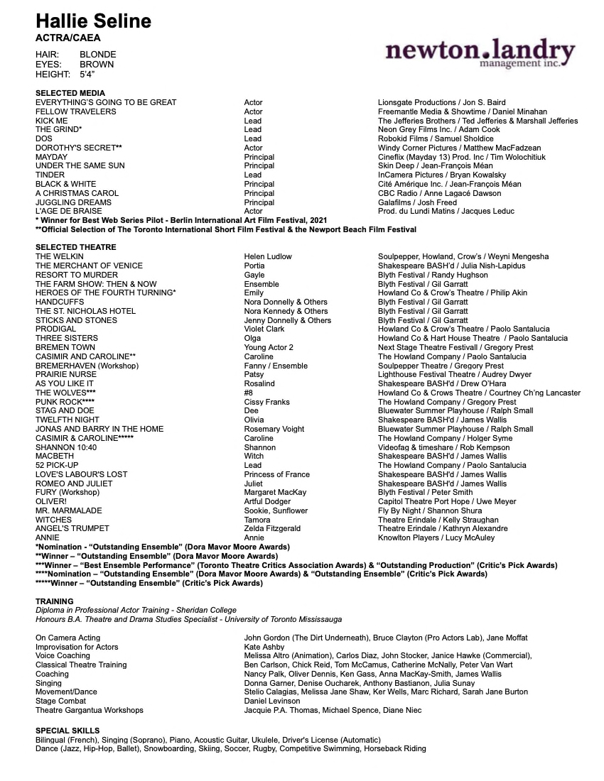 Actor – Theatre, Voice, Film & TV